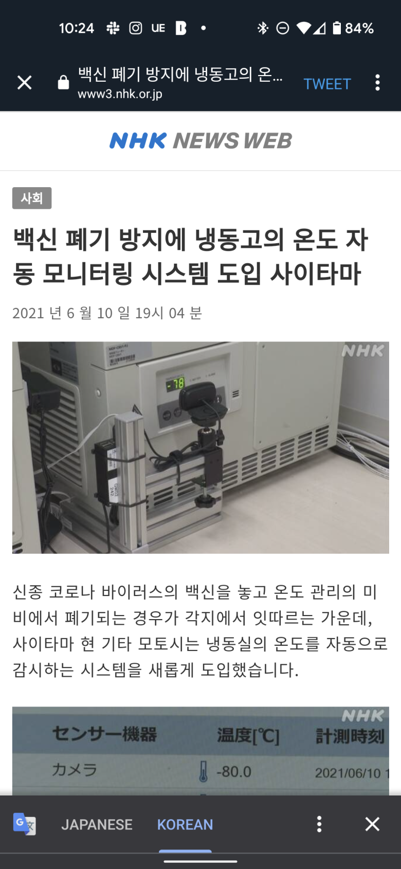 냉동고 온도 표기판에 웹캠 달아놓음.