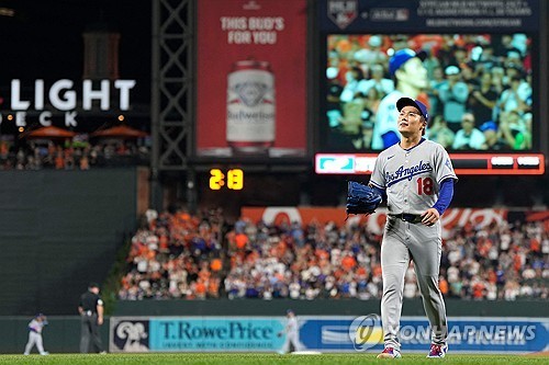 천병혁기자 구독 구독중 이전 다음 다저스 야마모토, 9회말 2아웃에 홈런 맞아 노히트 무산 이미지 확대 로스앤젤레스 다저스의 일본인 투수 야마모토 요시노부 9회말 2아웃까지 노히트 행진하다 홈런을 맞고 교체되는 야마모토 [게티이미지/AFP=연합뉴스] (서울=연합뉴스) 천병혁 기자 = 정규시…