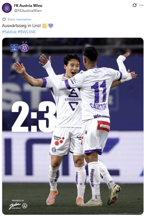최송아기자 구독 구독중 이전 다음 이미지 확대 승리 결과 알리는 구단 소셜 미디어 피드에 등장한 이태석 [아우스트리아 빈 엑스(X) 캡처. 재판매 및 DB 금지] (서울=연합뉴스) 최송아 기자 = 최근 국가대표 평가전에서 A매치 통산 첫 골을 터뜨린 측면 수비수 이태석(아우스트리아 빈)이 소속…