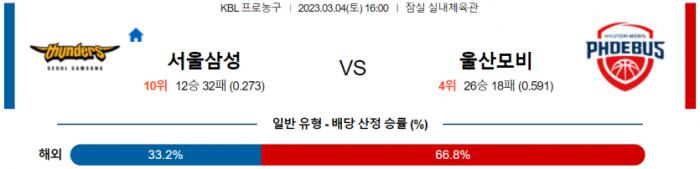 3월 4일 16:00 서울 삼성 : 울산 모비스