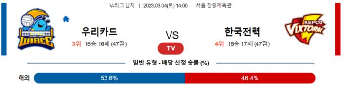 3월 4일 14:00 V-리그 남자 우리카드 : 한국전력
