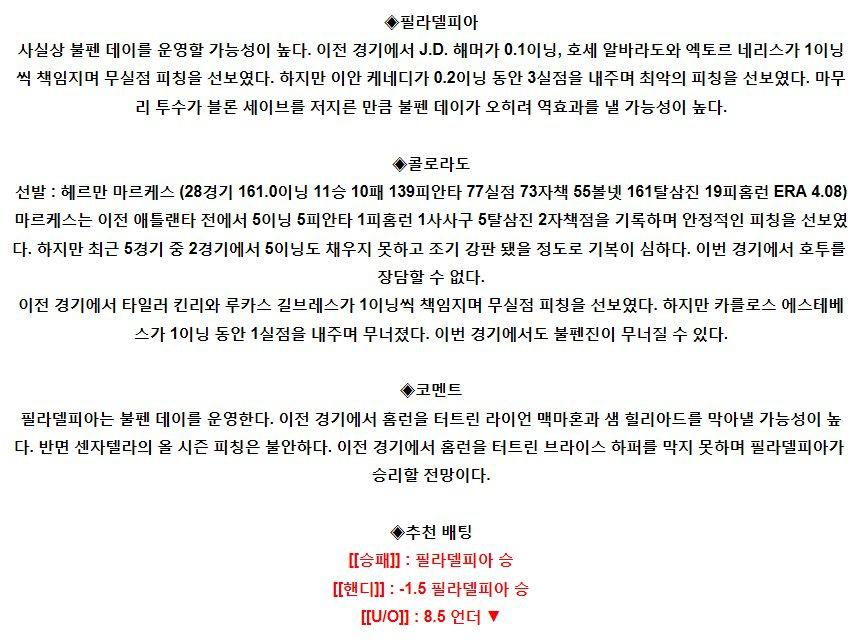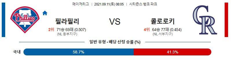 【MLB】 9월11일 필라델피아 vs 콜로라도 야구분석