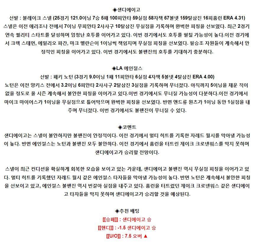 【MLB】 9월8일 샌디에이고 vs LA에인절스 야구분석