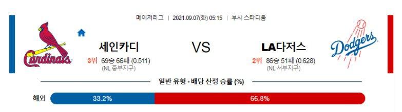 【MLB】 9월7일 세인트루이스 vs LA다저스 야구분석