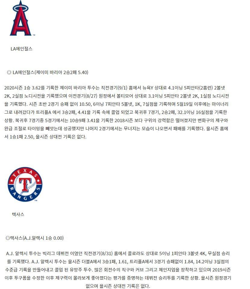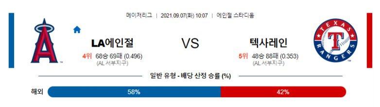 【MLB】 9월7일 LA에인절스 vs 텍사스 야구분석