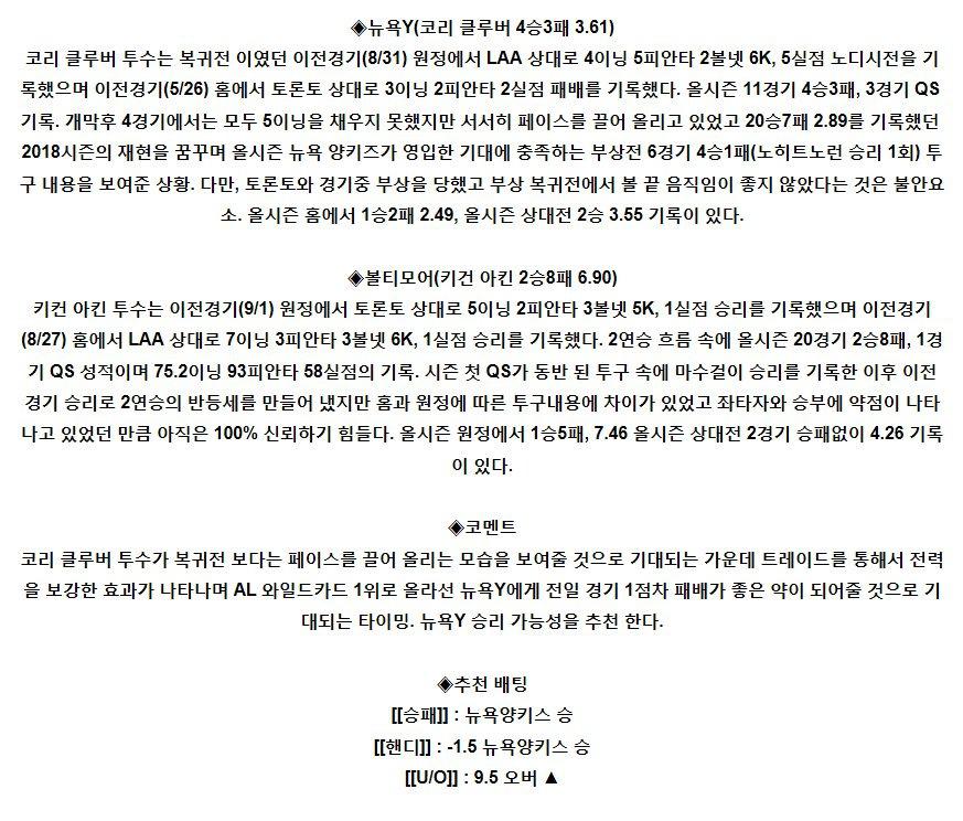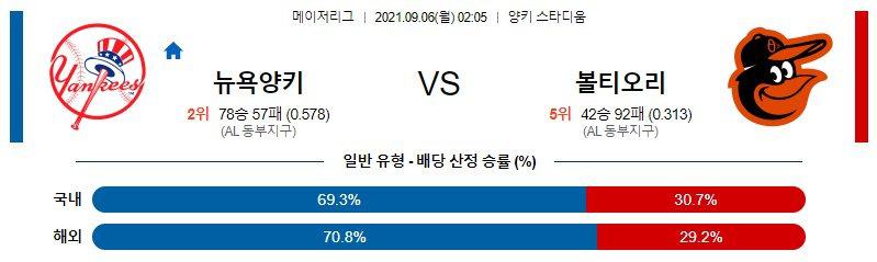 【MLB】 9월6일 뉴욕양키스 vs 볼티모어 야구분석