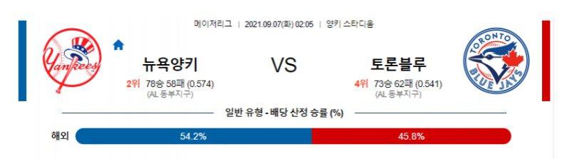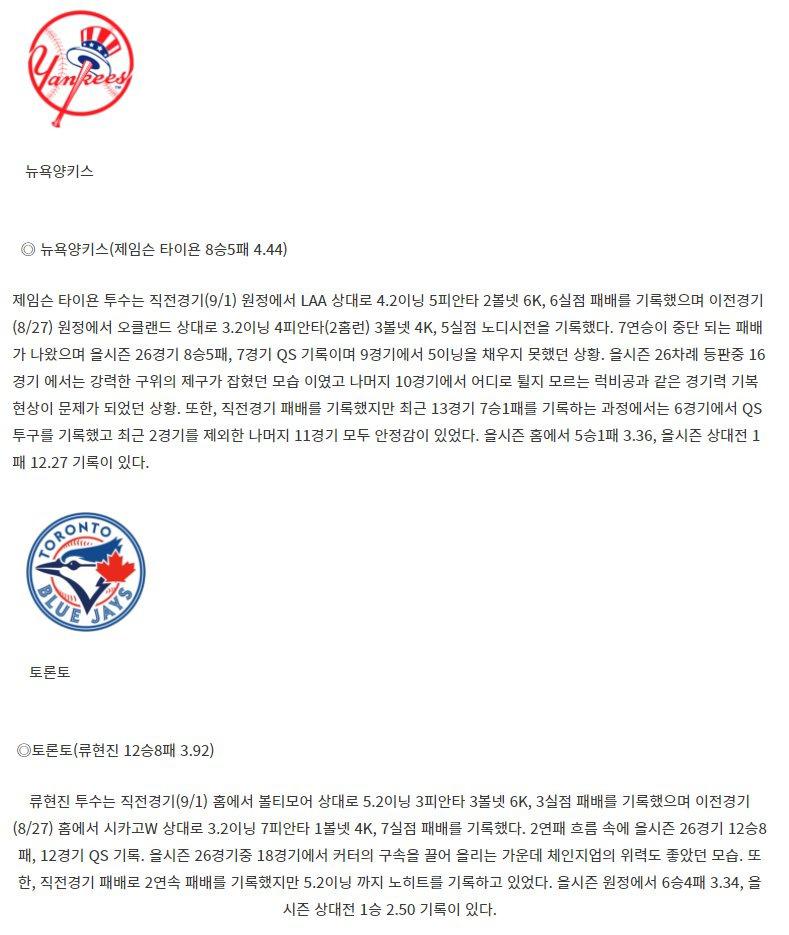 【MLB】 9월7일 뉴욕양키스 vs 토론토 야구분석
