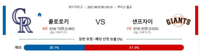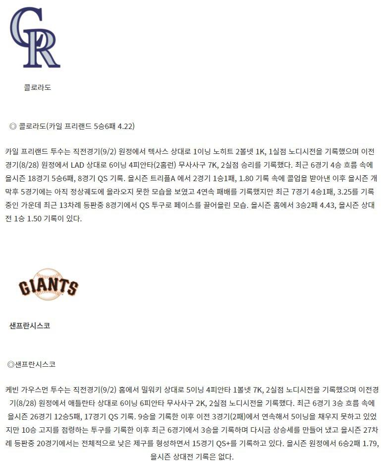 【MLB】 9월7일 콜로라도 vs 샌프란시스코 야구분석