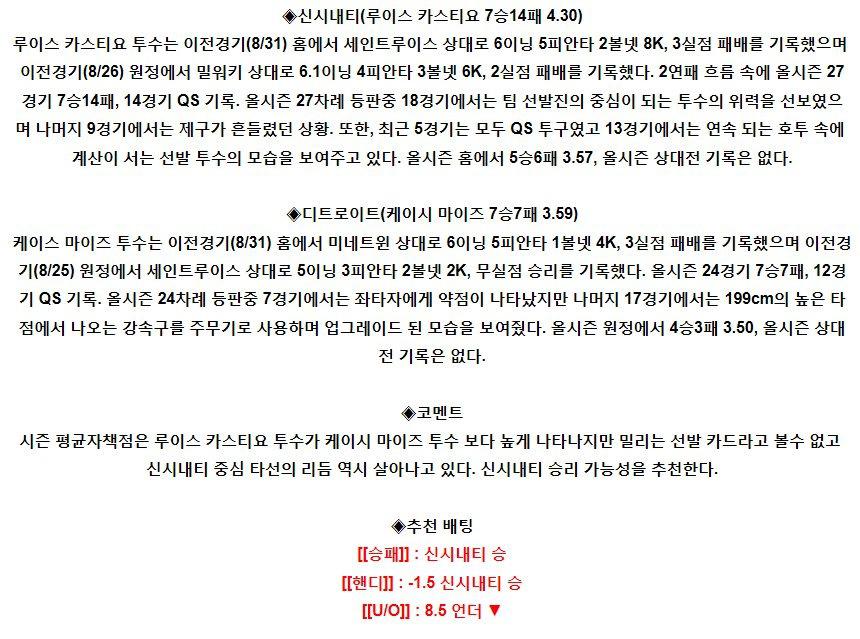 【MLB】 9월6일 신시내티 vs 디트로이트 야구분석