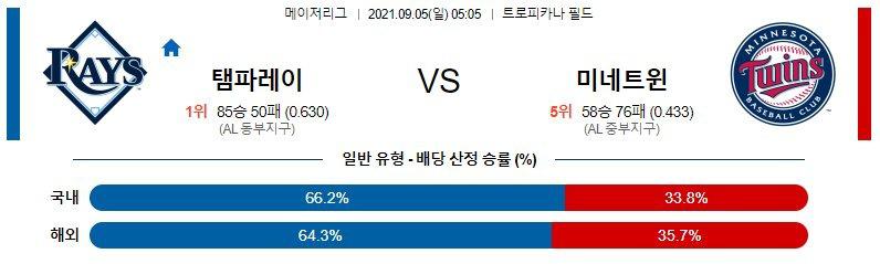 【MLB】 9월5일 템파베이 vs 미네소타 야구분석 야구중계 해외야구중계 해외야구분석 MLB분석 MLB중계