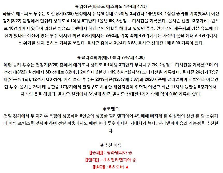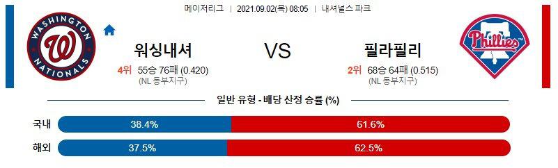 【MLB】 9월2일 워싱턴 vs 필라델피아 야구분석