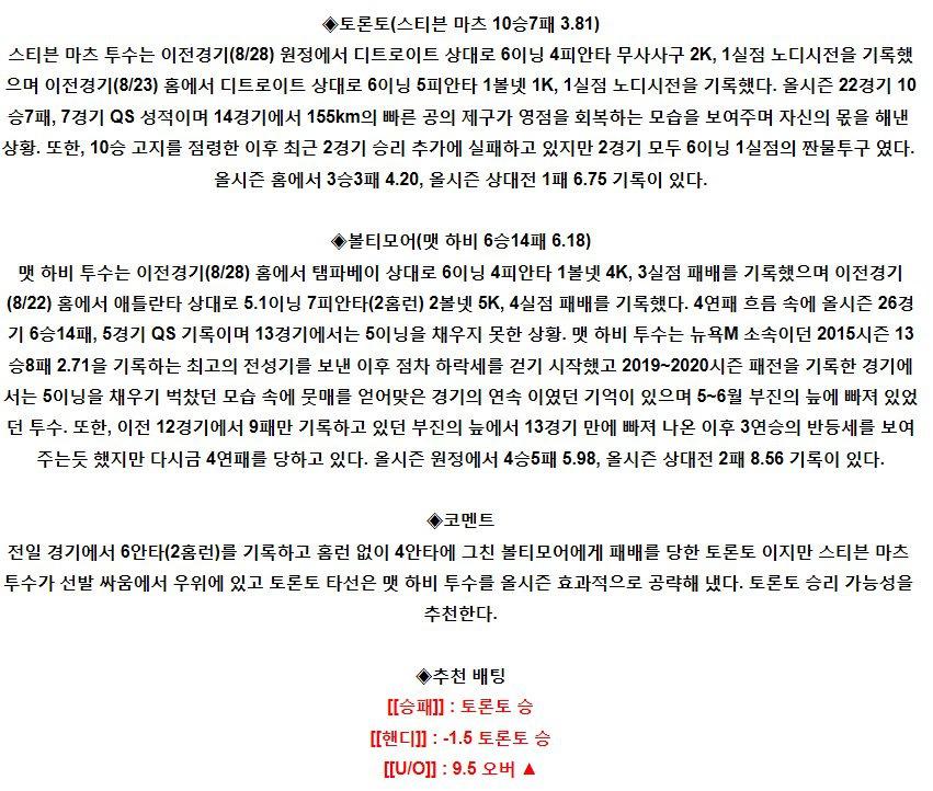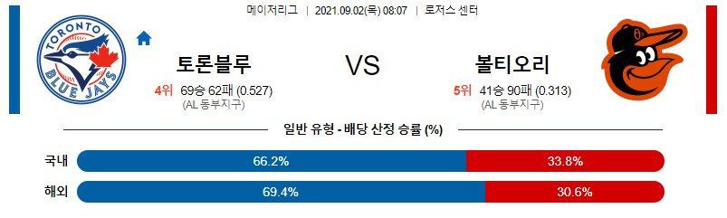 【MLB】 9월2일 토론토 vs 볼티모어 야구분석