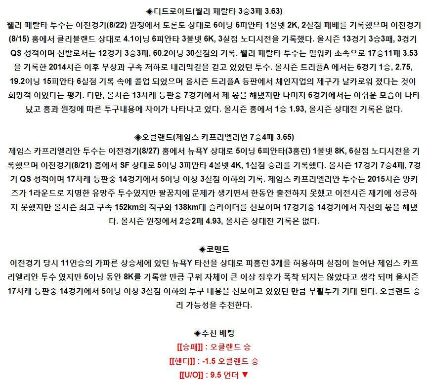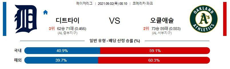 【MLB】 9월2일 디트로이트 vs 오클랜드 야구분석