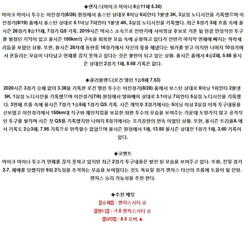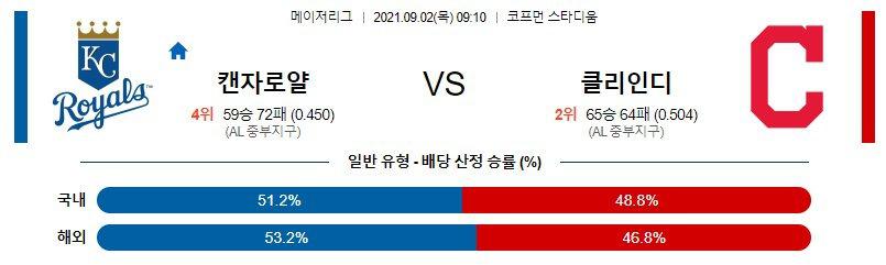 【MLB】 9월2일 캔자스시티 vs 클리블랜드 야구분석