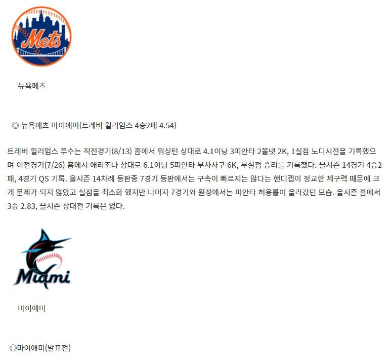 【MLB】 9월1일 뉴욕메츠 vs 마이애미 야구분석 야구중계 해외야구중계 해외야구분석 MLB분석 MLB중계