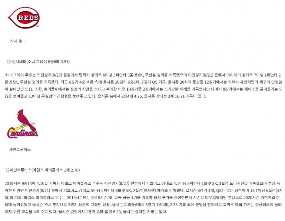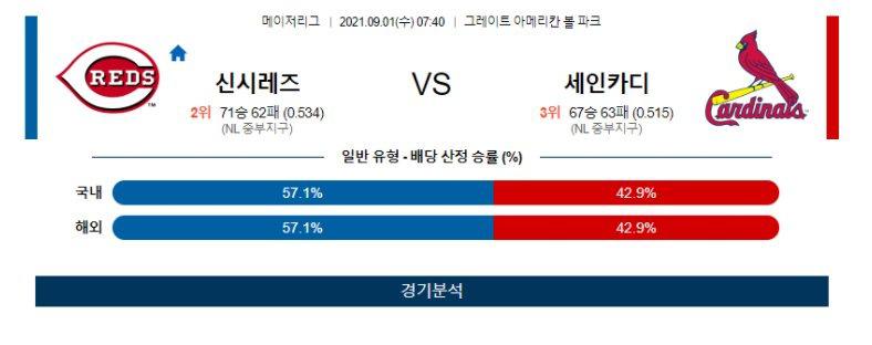 【MLB】 9월1일 신시내티 vs 세인트루이스 야구분석 야구중계 해외야구중계 해외야구분석 MLB분석 MLB중계