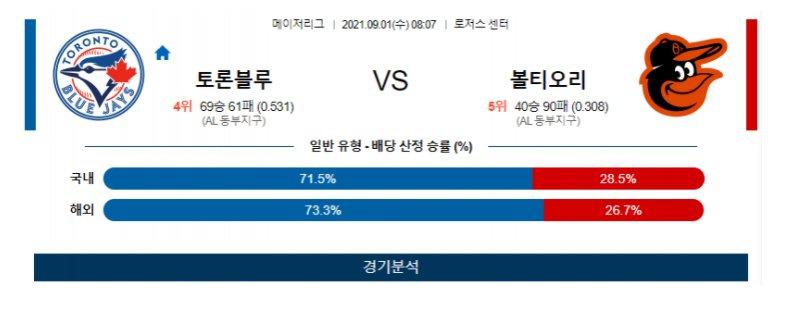 【MLB】 9월1일 토론토 vs 볼티모어 야구분석 야구중계 해외야구중계 해외야구분석 MLB분석 MLB중계 올인피디 야구 0 232
