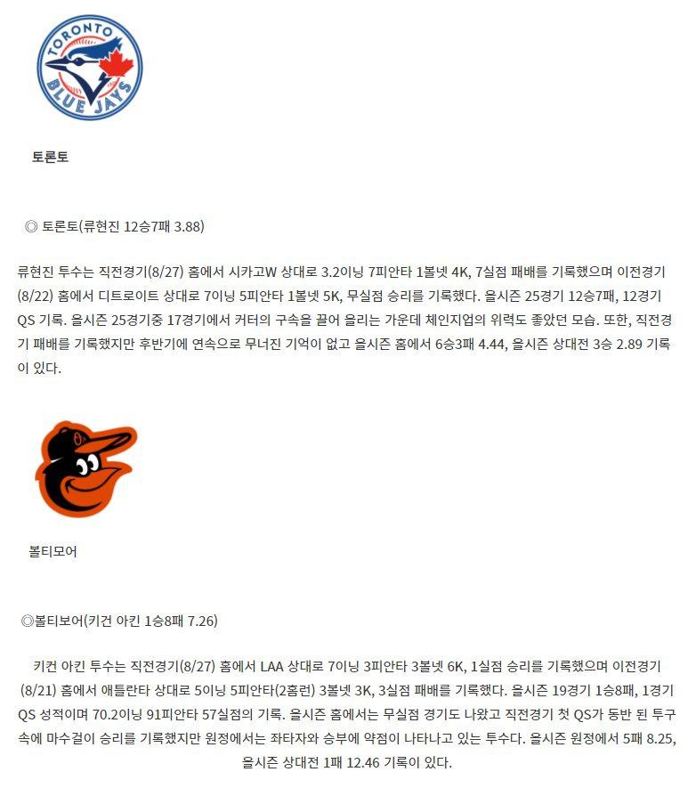 【MLB】 9월1일 토론토 vs 볼티모어 야구분석 야구중계 해외야구중계 해외야구분석 MLB분석 MLB중계 올인피디 야구 …