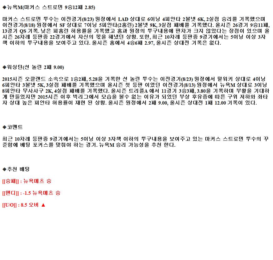 021년8월29일 뉴욕 메츠 워싱턴 내셔널스 해외야구중계