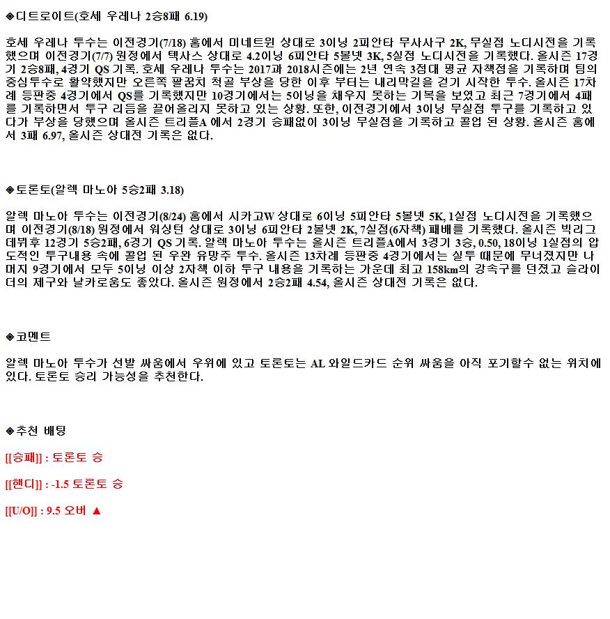 2021년8월29일 디트로이트 타이거즈 토론토 블루제이스 해외야구중계