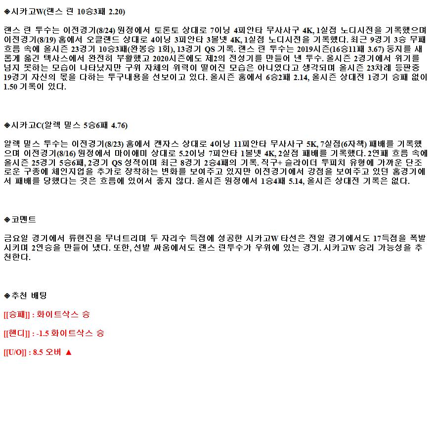2021년8월29일 시카고시카고 화이트삭스 시카고 컵스 해외야구중계