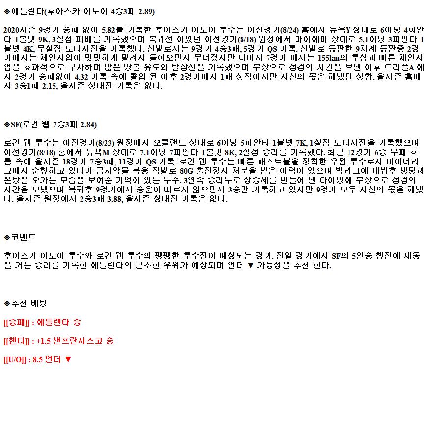 2021년8월29일 애틀랜타 브레이브스 샌프란시스코 자이언츠 해외야구중계