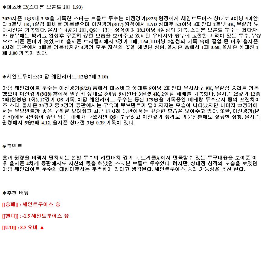 2021년8월29일 피츠버그 파이리츠 세인트루이스 카디널스 해외야구중계