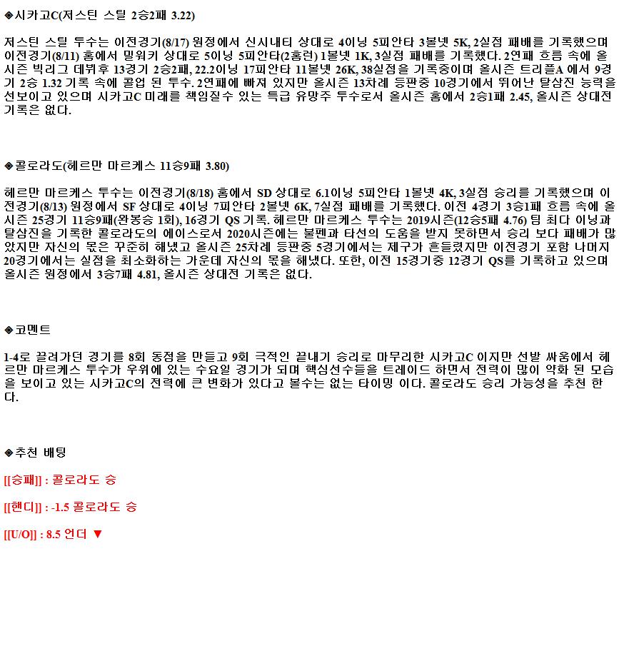 2021년8월25일 시카고 컵스 콜로라도 로키스 해외야구중계