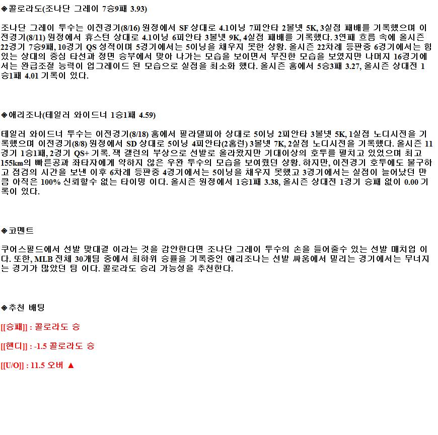 2021년8월23일 콜로라도 로키스 애리조나 다이아몬드백스 해외야구중계