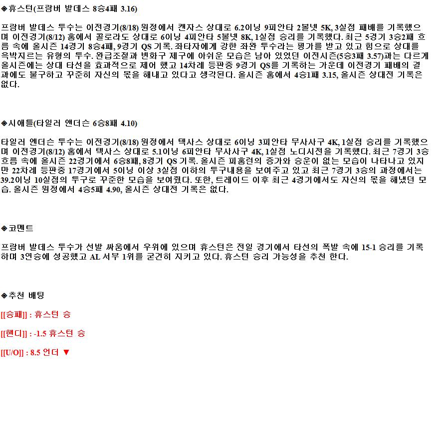 2021년8월24일 휴스턴 애스트로스 캔자스시티 로열스 해외야구중계