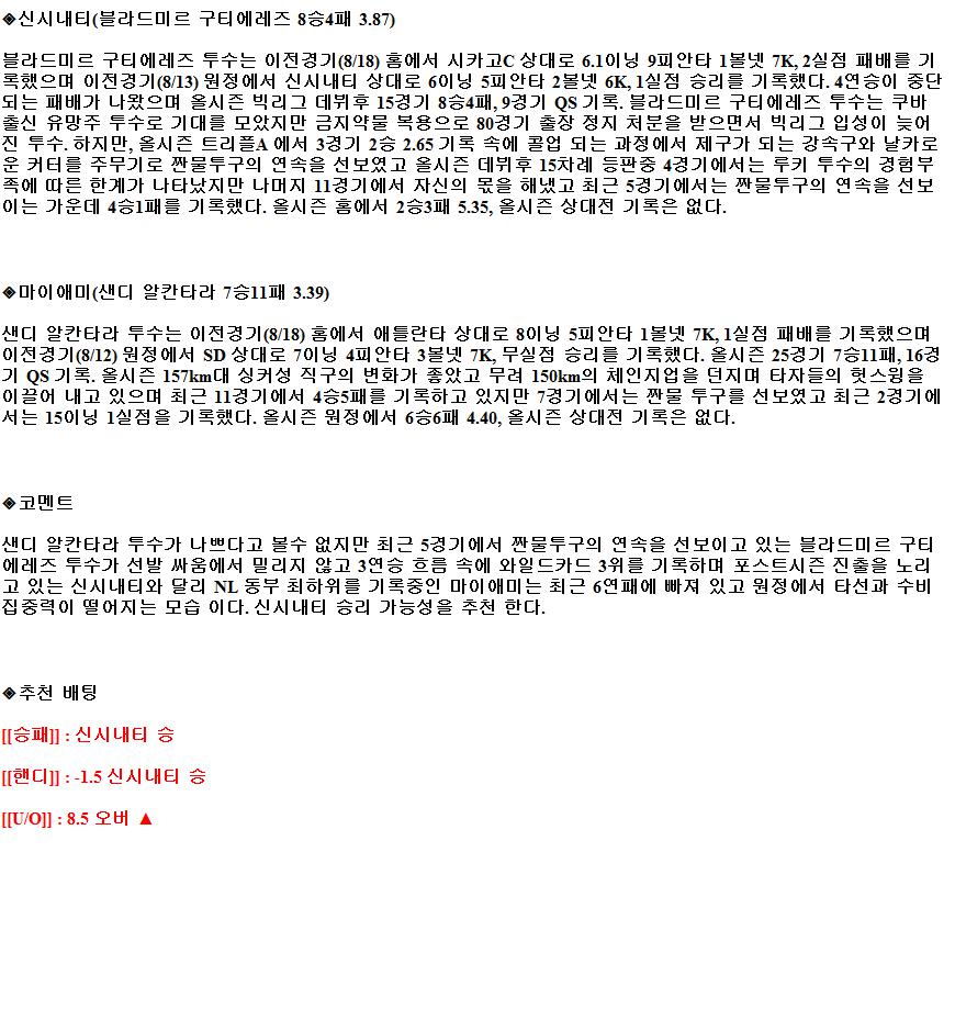 2021년8월23일 신시내티 레즈 마이애미 말린스 해외야구중계