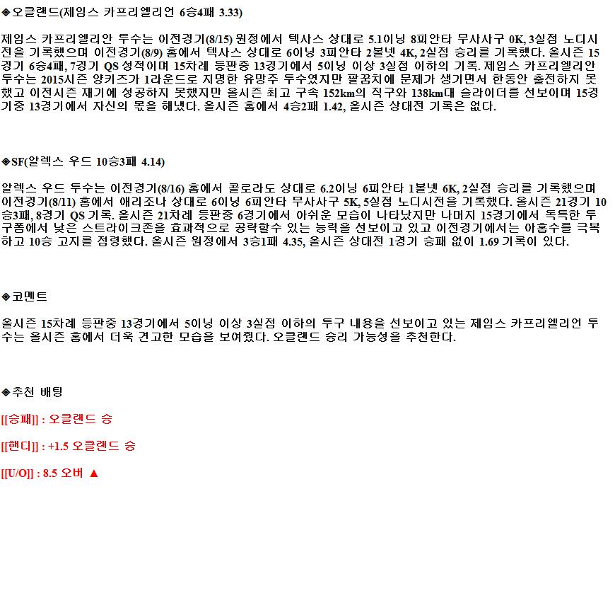 2021년8월21일 오클랜드 어슬레틱스 샌프란시스코 자이언츠 해외야구중계