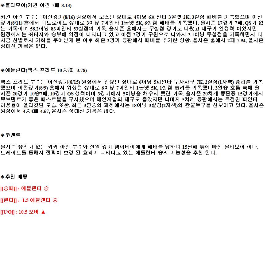 2021년8월21일 볼티모어 오리올스 애틀랜타 브레이브스 해외야구중계