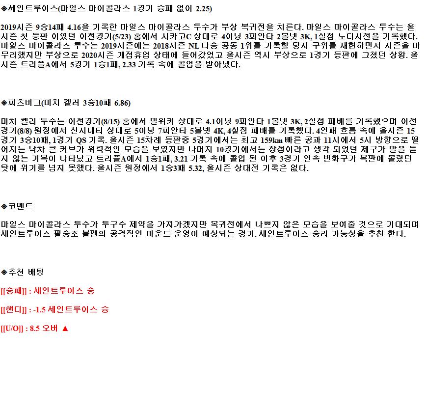 2021년8월21일 세인트루이스 카디널스 피츠버그 파이리츠 해외야구중계