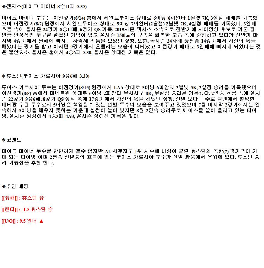 2021년8월20일 캔자스시티 로열스 휴스턴 애스트로스 해외야구중계
