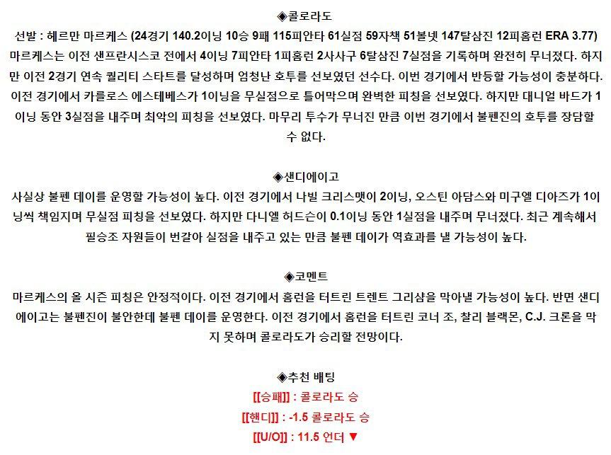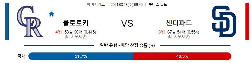 【MLB】 8월18일 콜로라도 vs 샌디에이고 야구분석