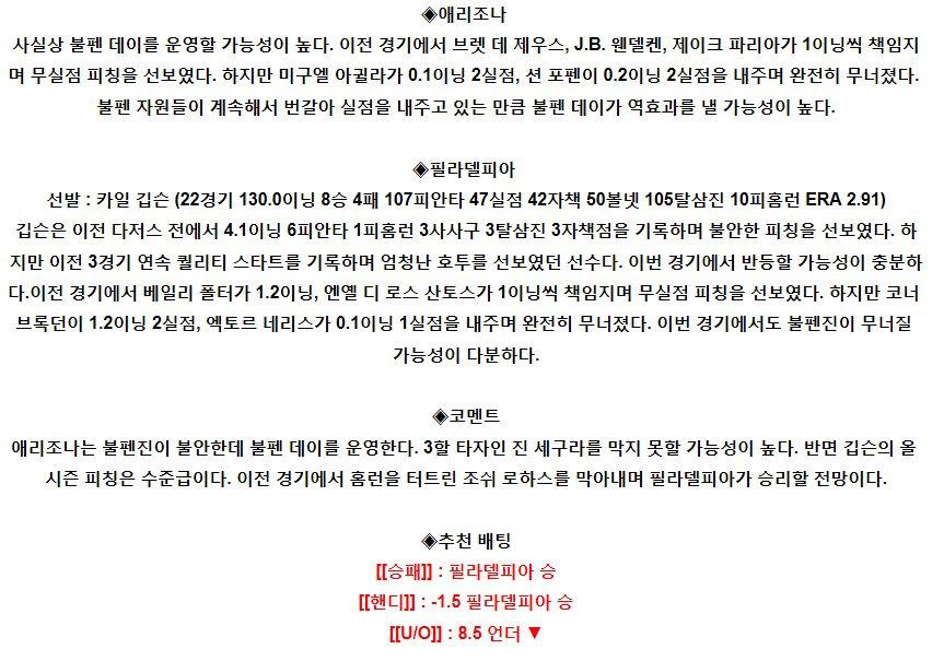 【MLB】 8월18일 애리조나 vs 필라델피아 야구분석