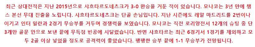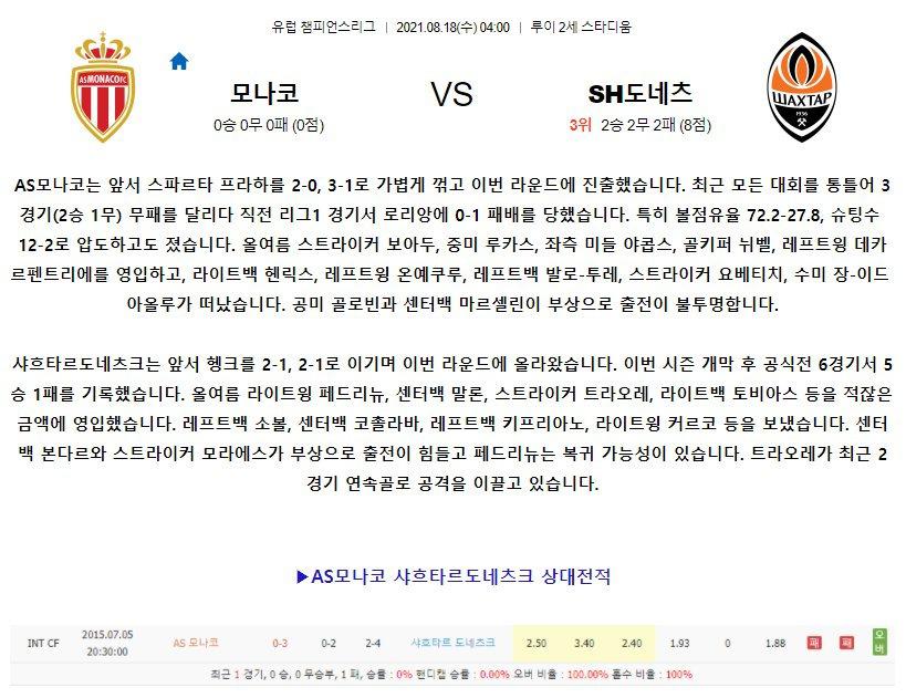 [UEFA챔피언스리그] 8월18일 모나코 vs 샤흐타르도네츠크 경기분석
