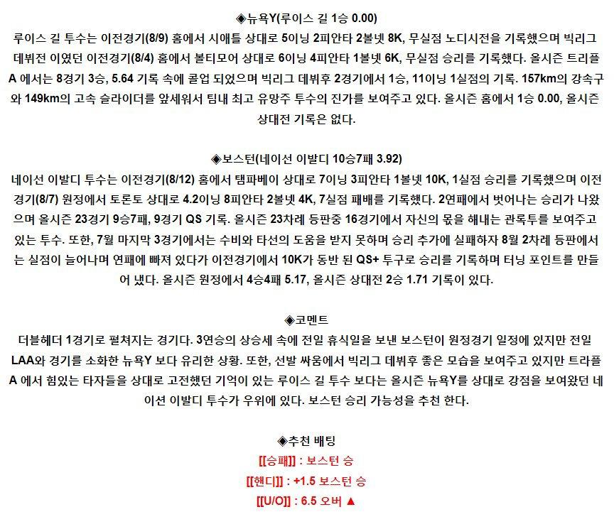 【MLB】 8월18일 뉴욕양키스 vs 보스턴 야구분석