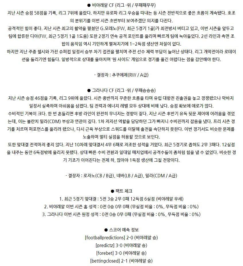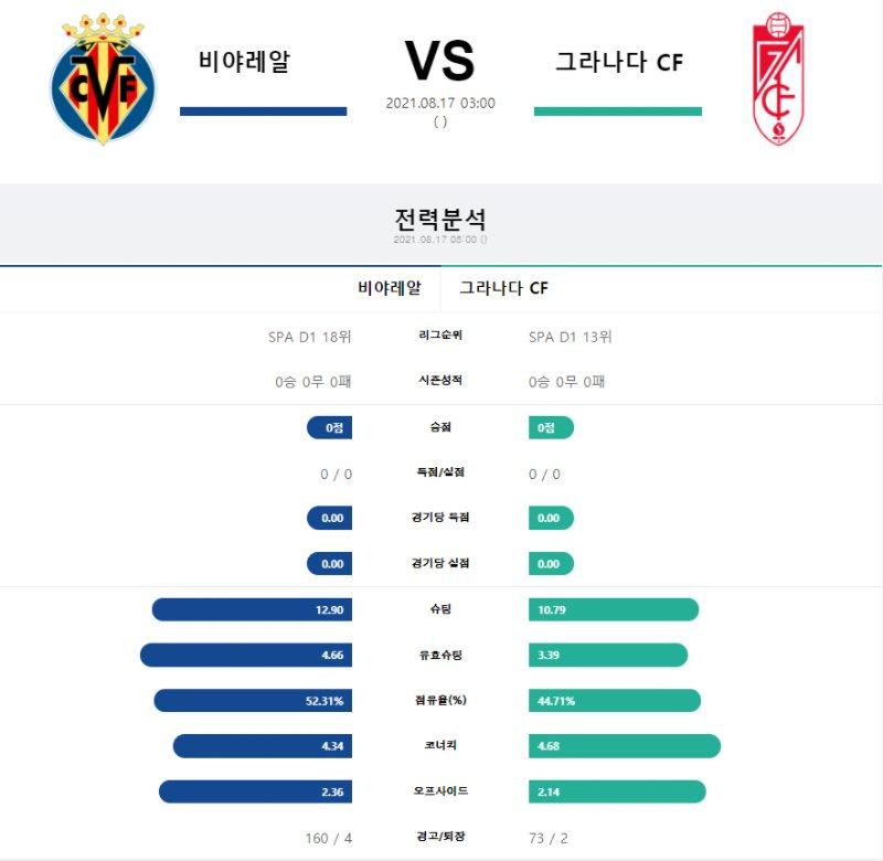 [라리가] 8월17일 비야레알 vs 그라나다 경기분석 축구중계 축구분석 스포츠분석 스포츠중계 프로토 해외축구 해축 스페인축구