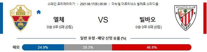 [라리가] 8월17일 엘체 vs 빌바오 경기분석 축구중계 축구분석 스포츠분석 스포츠중계 프로토 해외축구 해축 스페인축구