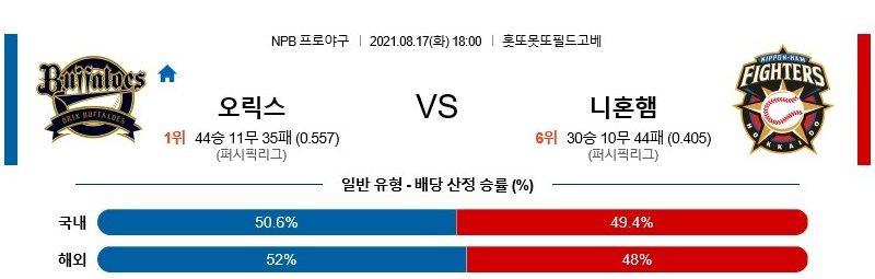 【NPB】 8월17일 오릭스 vs 니혼햄 스포츠중계 스포츠분석 야구분석 야구중계 해외야구중계 해외야구분석 NPB분석 NPB중계