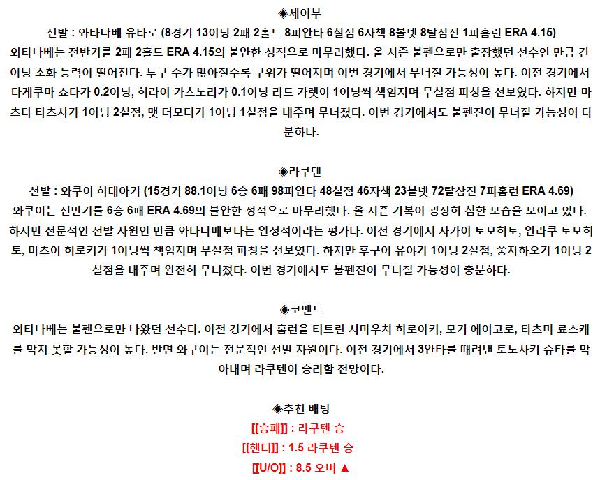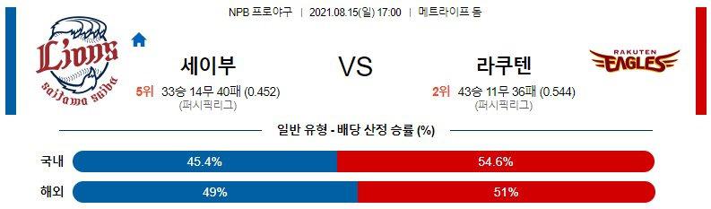【NPB】8월 15일 세이부 vs 라쿠텐 야구분석 야구중계 해외야구중계 해외야구분석 NPB분석 NPB중계 일본야구 일본야구중계