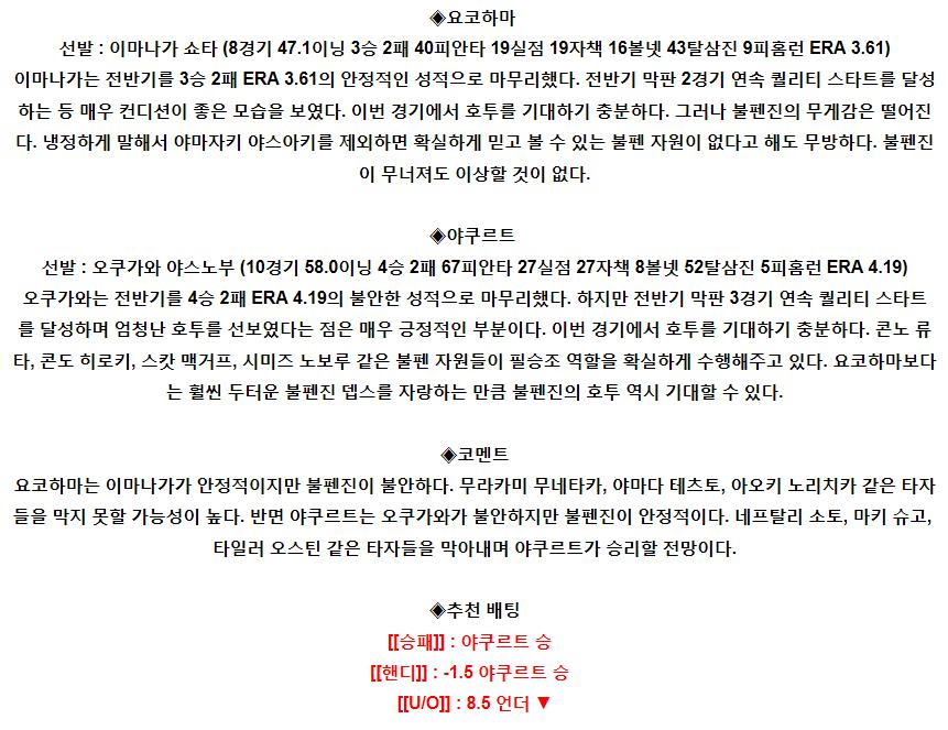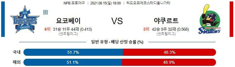 【NPB】8월 15일 요코하마 vs 야쿠르트 야구분석 야구중계 해외야구중계 해외야구분석 NPB분석 NPB중계 일본야구