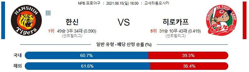 【NPB】8월 15일 한신 vs 히로시마 야구분석 야구중계 해외야구중계 해외야구분석 NPB분석 NPB중계 일본야구 일본야구중계