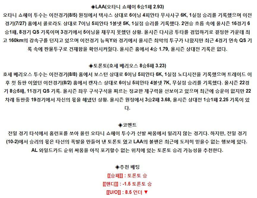 【MLB】 8월13일 LA에인절스 vs 토론토 야구분석