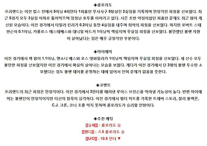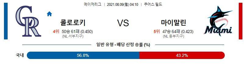 【MLB】 8월9일 콜로라도 vs 마이애미 해외야구분석