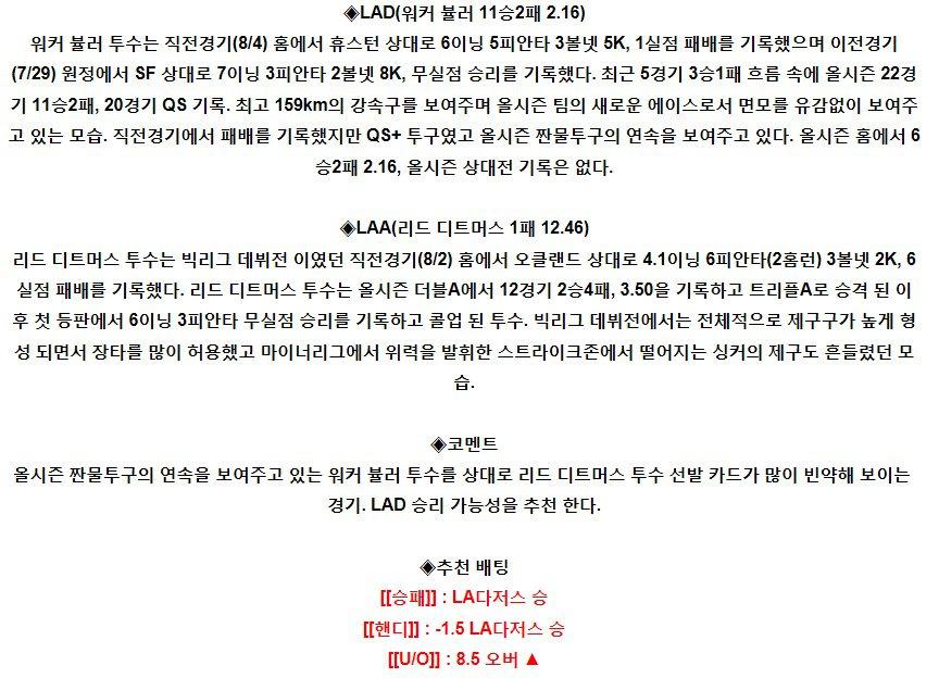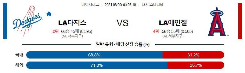 【MLB】 8월9일 LA다저스 vs LA에인절스 해외야구분석