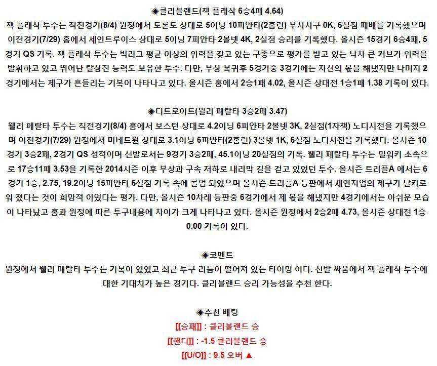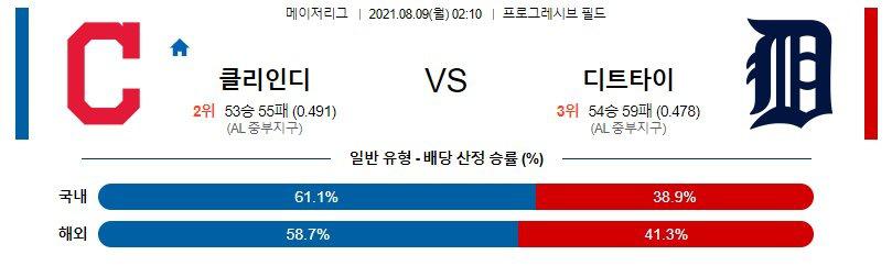 【MLB】 8월9일 클리블랜드 vs 디트로이트 해외야구분석