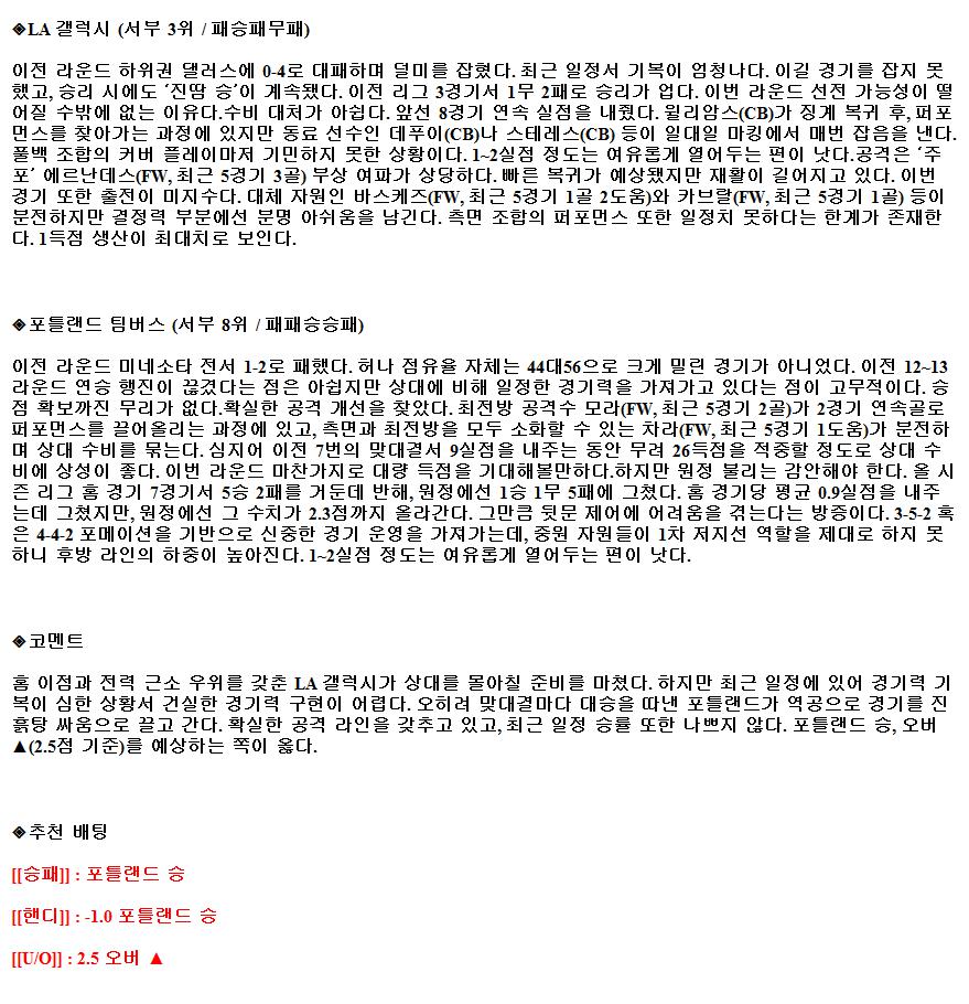 7월31일 MLS LA갤럭시 포틀랜드 해외축구중계